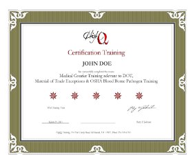 Be in compliance, avoid costly fines and differentiate yourself from other courier companies with our online courier training program. This concise 20-minute program is constantly updated with the latest information required by the D.O.T. (Department of Transportation) and now includes OSHA Blood Borne Pathogen training. Access the program online and receive your certificate via email, all from your office or home computer. At the completion of the training, you are guided to a short online quiz that you can keep for your records. Upon successfully answering and submitting the quiz you are provided a Certificate of Completion.