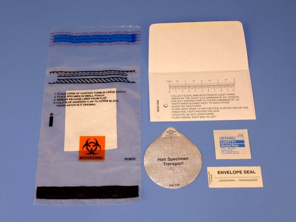 Each kit contains the necessary collection and transport components to effectively collect, store and transport the hair specimen to a testing laboratory for analysis. Therapak’s kit features: a sample acquisition envelope complete with instructions, an envelope seal, a round foil cinching sheet, an alcohol prep pad and a specimen transport bag. Both the sample acquisition envelope and the envelope seal provide collector and donor chain of custody to insure that each self-contained sample is secure for tamper-evident transport.