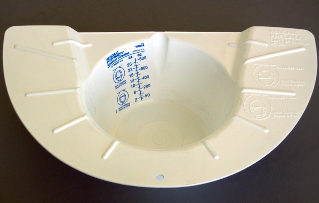 Therapak’s commode collection system features a wide lip that fits the perimeter of most standard toilets, which prevents tipping. Inside is clearly marked with easy to read graduations. Ideal collection unit for urine, stool, and kidney stones.